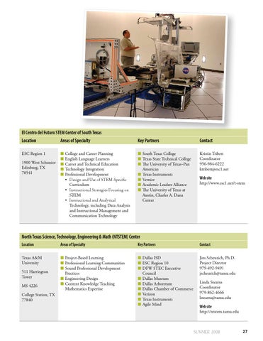 ■ College and Career Planning ■ English Language Learners ■ Career and Technical Education ■ Technology Integration ■ Professional Development • Design and Use of STEM-Specific Curriculum • Instructional Strategies Focusing on STEM • Instructional and Analytical Technology, including Data Analysis and Instructional Management and Communication Technology