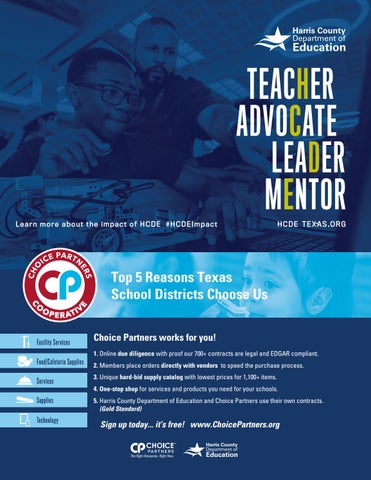 2. Members place orders directly with vendors to speed the purchase process. 3. Unique hard-bid supply catalog with lowest prices for 1,100+ items. 4. One-stop shop for services and products you need for your schools. 5. Harris County Department of Education and Choice Partners use their own contracts. (Gold Standard)
