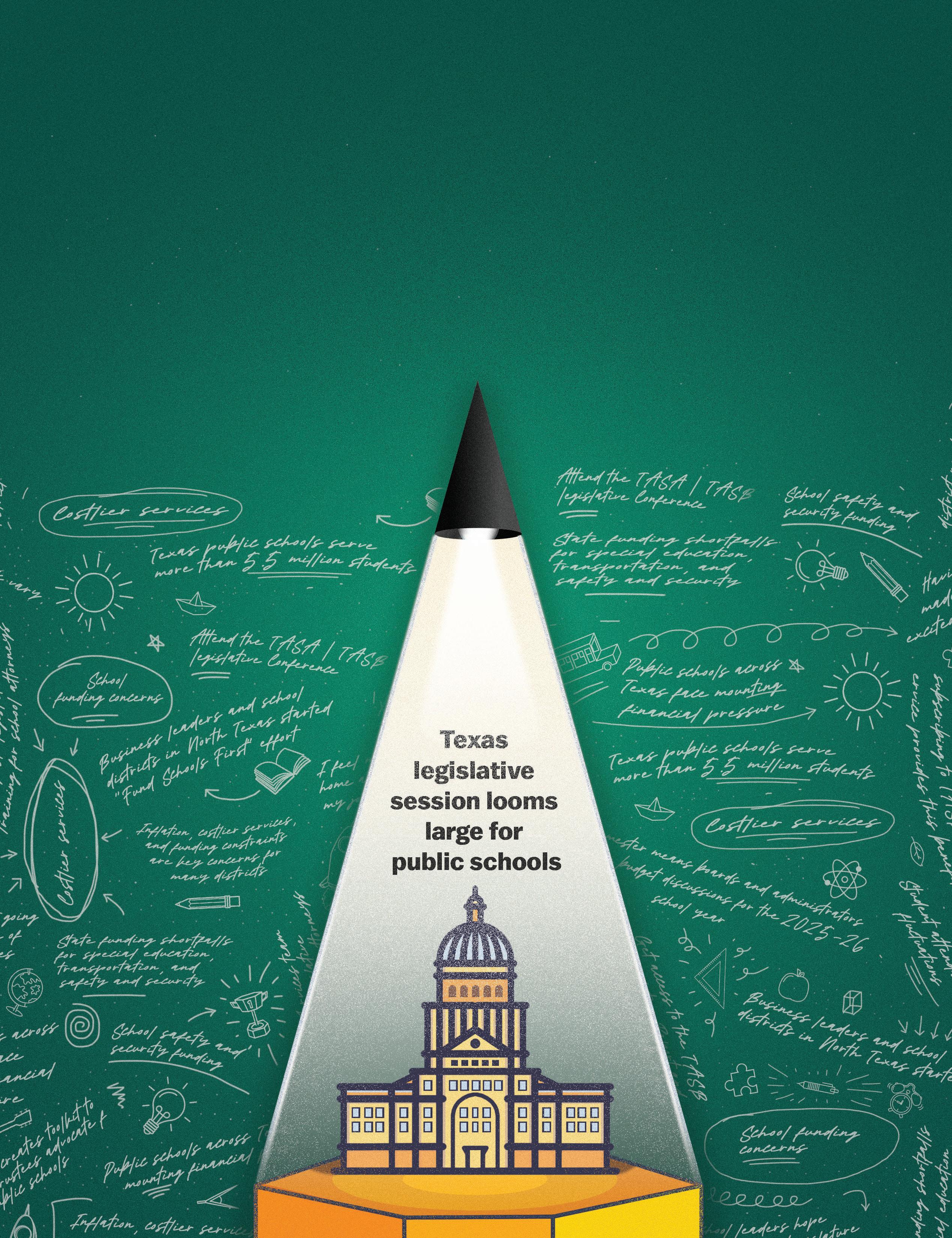 Texas Lone Star (ISSN 0749-9310) is published six times a year by the Texas Association of School Boards. Copyright© 2025 by the Texas Association of School Boards (TASB). All rights reserved. Reproduction, adaptation, distribution, and exhibition in whole or in part are prohibited under penalty of law without the written license or permission of TASB. Copies of Texas Lone Star are mailed to trustees of TASB member school boards and their superintendents as part of their membership. Subscriptions are available to nonmembers for $36 (1 year), $69 (2 years), and $99 (3 years). Single copies are $5.