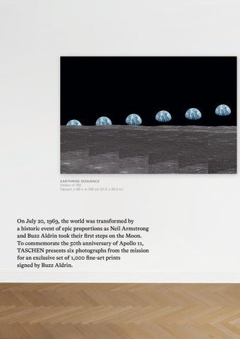 On July 20, 1969, the world was transformed by a historic event of epic proportions as Neil Armstrong and Buzz Aldrin took their first steps on the Moon. To commemorate the 50th anniversary of Apollo 11, TASCHEN presents six photographs from the mission for an exclusive set of 1,000 fine-art prints signed by Buzz Aldrin.