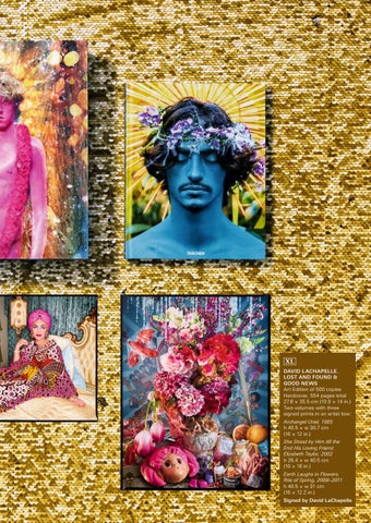 XL DAVID LACHAPELLE. LOST AND FOUND & GOOD NEWS Art Edition of 500 copies Hardcover, 554 pages total 27.8 × 35.5 cm (10.9 × 14 in.) Two volumes with three signed prints in an artist box: Archangel Uriel, 1985 h 40.5 × w 30.7 cm (16 × 12 in.) She Stood by Him till the End His Loving Friend. Elizabeth Taylor, 2002 h 26.4 × w 40.5 cm (10 × 16 in.) Earth Laughs in Flowers. Rite of Spring, 2008–2011 h 40.5 × w 31 cm (16 × 12.2 in.) Signed by David LaChapelle