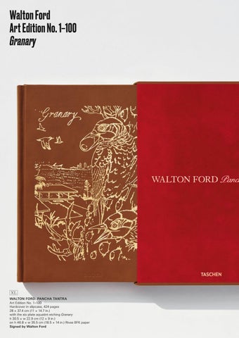 XL WALTON FORD. PANCHA TANTRA Art Edition No. 1–100 Hardcover in slipcase, 424 pages 28 × 37.4 cm (11 × 14.7 in.) with the six plate aquatint etching Granary h 30.5 × w 22.9 cm (12 × 9 in.) on h 46.8 × w 35.5 cm (18.5 × 14 in.) Rives BFK paper Signed by Walton Ford