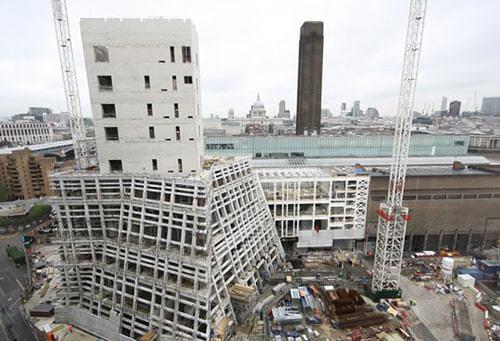 Figure 34: Construction Phase (Source: Rennie Jones. "(2023, May 09). Retrieved from Archeyes|Timeless architecture: https://archeyes.com/the-tate-modern-herzog-de-meurons-contribution-to-londons-cultural-landscape/)