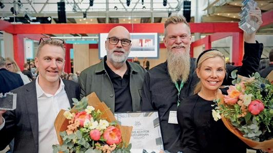 Voittajat vasemmalta: Fredrik Liliedahl, UBA Glas & Fasad, Daniel Hohenthal ja Marcus Hultberg, Kanozi Arkitekter ja Lina Brömer, Castellum. Kuvaaja: Magnus East