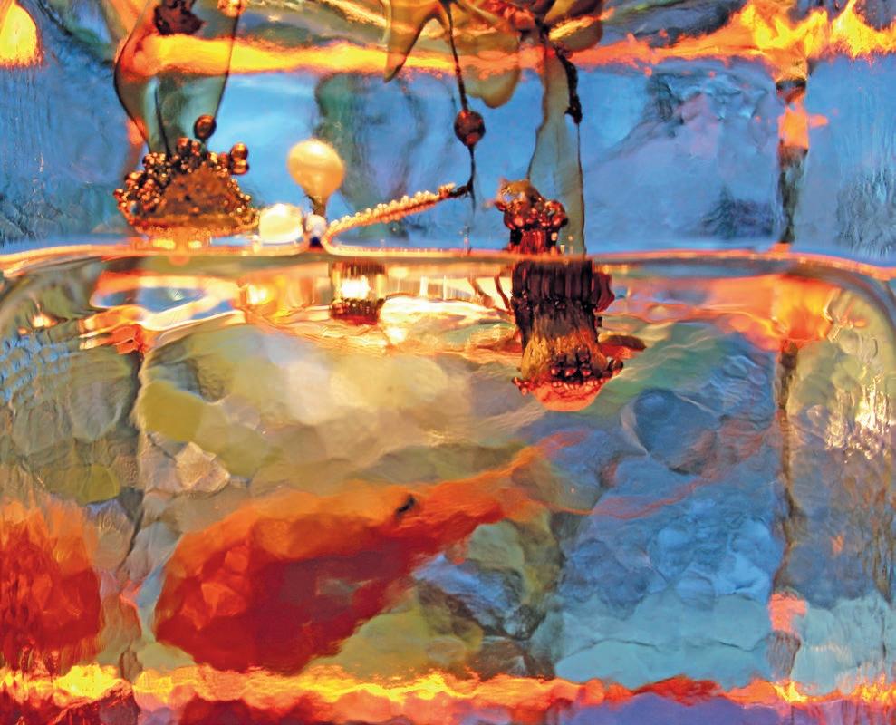 Lasilaminaateissa on kuvat taidelasista, joissa on erilaisia valon taitteita, siirtymiä ja projektioita. Valokuvaaja: Jeanette Karsten.