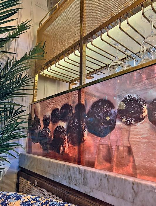 Ja kaikissa taiteilijan käsin kaiverretut signeeraukset. Valokuviin Jeanette on saanut vangittua valon dramaattisen taittumisen lasissa, aiheenaan merenelävät. Ravintolassa lasipaneelit toimivat ilmavina tilanjakajina ja samalla luovat tilaan vahvan identiteetin. Haasteena projektissa oli messinkiyksityiskohtien suunnittelu ja toteutus, johon tarvittiin huolellista mittausta. Sekä valaistus toteutettuna niin, etteivät lasit häikäise asiakkaita.