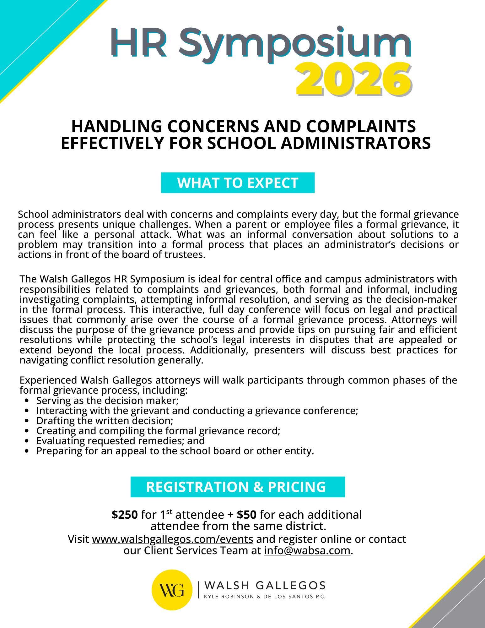 According to the National Institute of Mental Health, one in five people will experience a mental health condition in their lifetime. It is likely that most school districts have at least one employee with a mental health condition. HR professionals can prepare to work with employees who need accommodations by reviewing the district’s job descriptions and forms. Attorneys at Walsh Gallegos are standing by to help when questions arise.