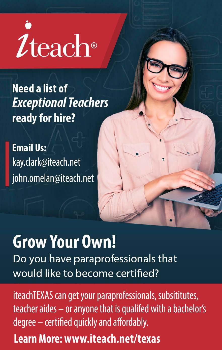 Texas Teachers of Tomorrow invites you to help us elevate the teaching profession as we recruit and retain teachers through quality support and programming. Partner with us to develop a path forward and fill your teacher vacancies with our qualified candidates by sending an email to TheList@TexasTeachers.org. We look forward to serving your needs!