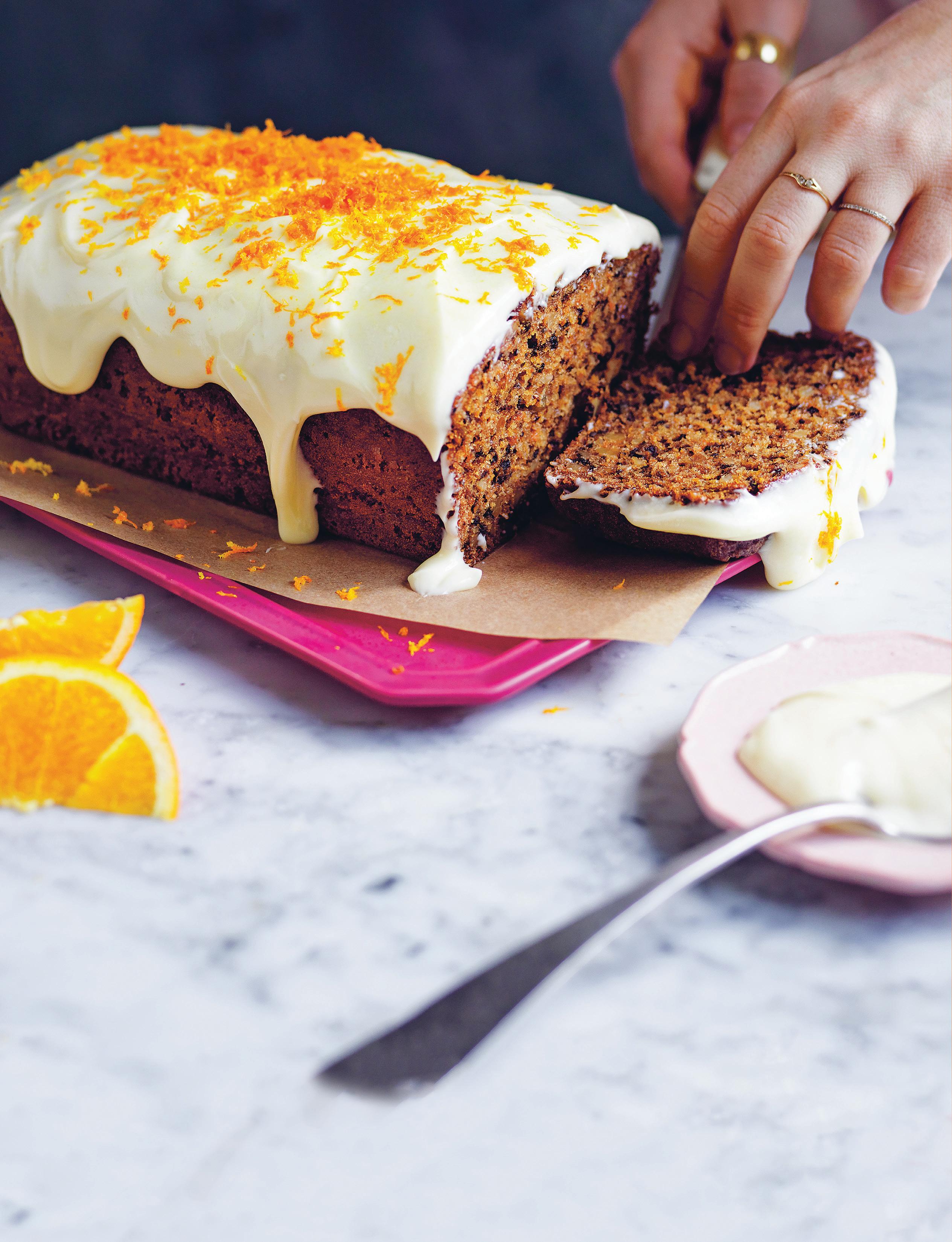 8. Spread icing thickly over top of cooled cake. Grate over some extra orange zest before serving.