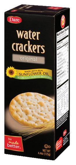 Enjoy the classic taste and delicate texture of these allnatural Water Crackers. Made with the delicious taste of sunflower oil, these healthy crackers are firm enough for any topping and perfect for every occasion.