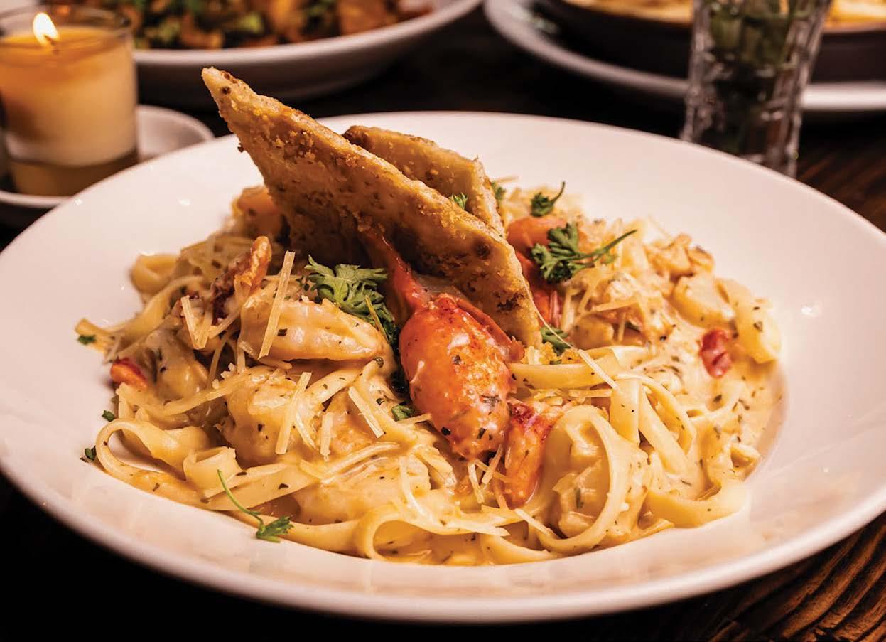 CRAB + SHRIMP PICCATA tomatoes, capers, lemon, white wine + garlic butter sauce, linguini 36