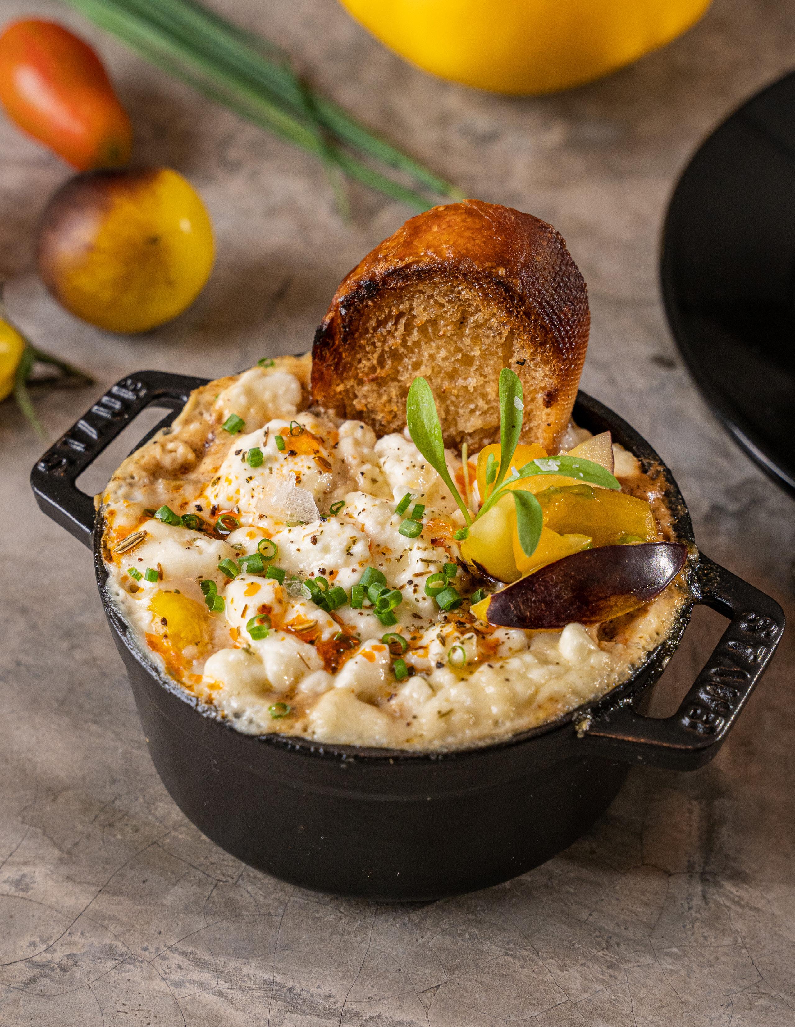 Butter Cream Black pepper Za’atar Salt Chili oil Chives Serve with bread Cilantro sprouts for decoration