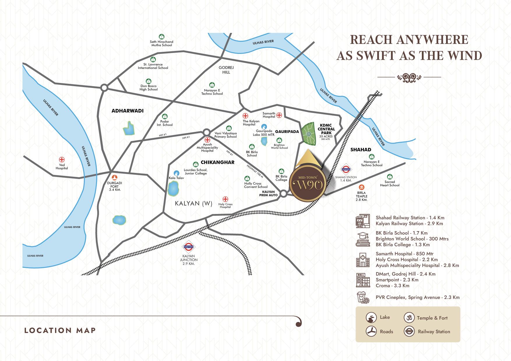 Maruti Group Presenting Midtown W90 in Kalyan West. Midtown W90 is a perfectly designed and contemporary development by Maruti Group, is a single tower with excellent amenities. Midtown kalyan offers spacious 2 3 4 Bhk Flats with perfect balance of ventilation and natural lighting. Book your Dream Home Today at Best Price.