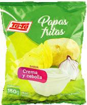 Papas fritasTA-TA, 150 gr Clásicas, crema y cebolla u onduladas Precio regular: $141 Precio Oferta $ 99