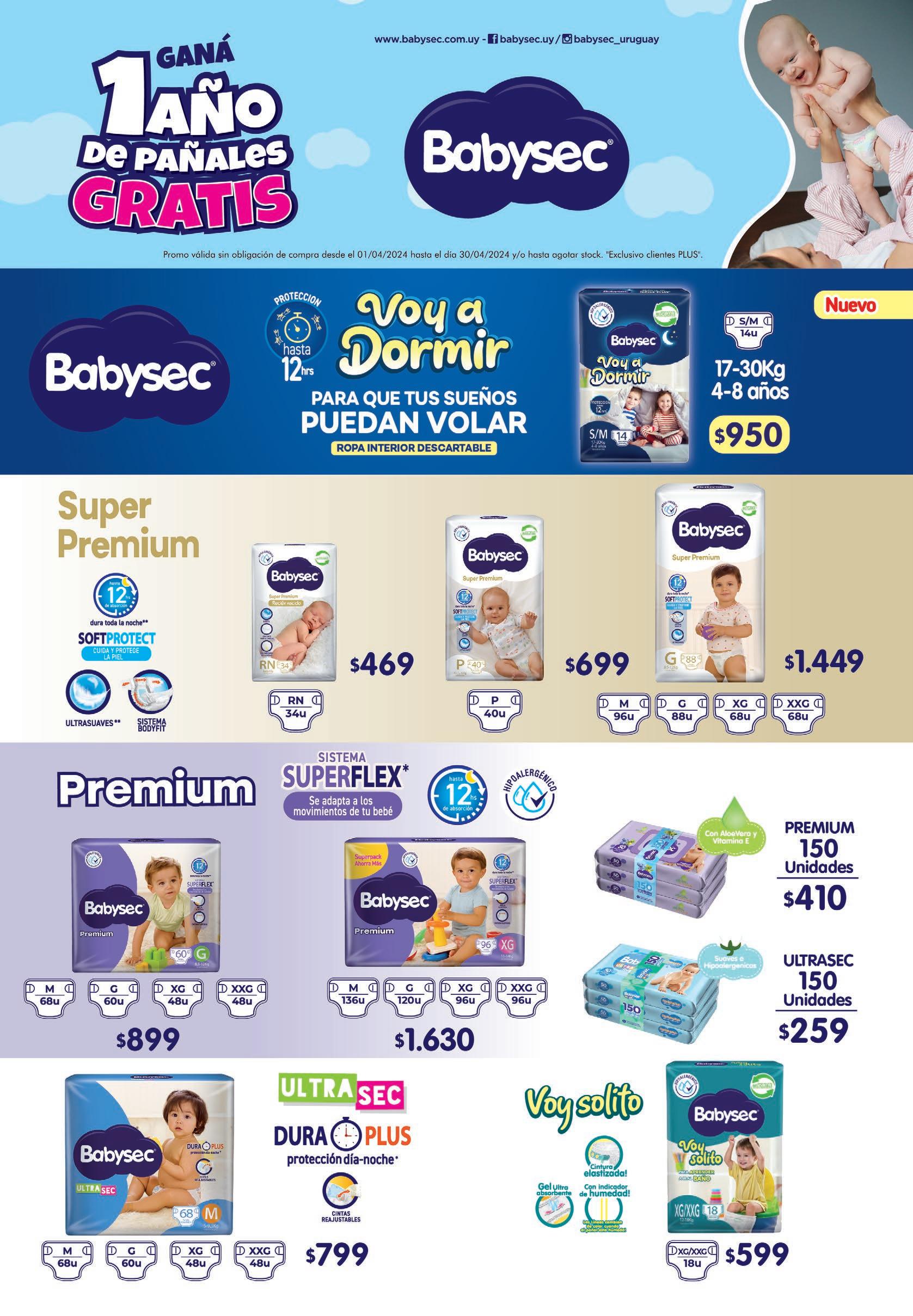 Pañales PAMPERS Confort Sec, talles P, M o G. Precio regular: $1.199 Oferta $970 Talco para bebé DR. SELBY, 250 gr. Precio regular: $189 Oferta $149 Paños de algodón ESTRELLA BABY, 40 unidades. Precio regular: $186 Oferta $140 Toallas húmedas PAMPERS Sensitive, 56 unidades. Precio regular: $345 Oferta $250 Hisopos TERNURA, 150 unidades. Precio regular: $109 Oferta $69 Estuche BEBÉ & CO. colonia spray, 120 ml. +talco con avena. Precio regular: $725 Oferta $499 Toallitas para bebé JÚPITER. Precio regular: $89 Oferta $69 Toallas húmedas TRIAL Baby,72 unid. Precio regular: $129 Oferta $79 Pañales PAMPERS Confort Sec forte, talles XG o XXG. Precio regular: $1.350 Oferta $1.099