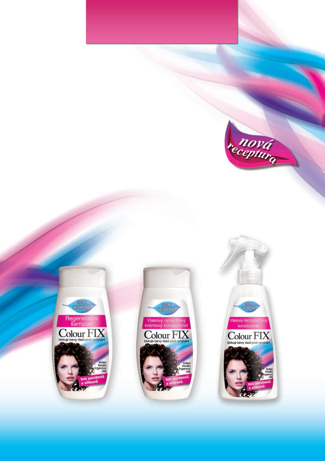 Vlasový oplachový krémový kondicionér COLOUR FIX 260 ml, kód 8042 Regenerační šampon COLOUR FIX 260 ml, kód 8041 Vlasový bezoplachový kondicionér COLOUR FIX 260 ml, kód 8043