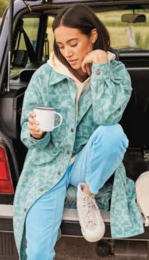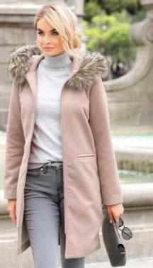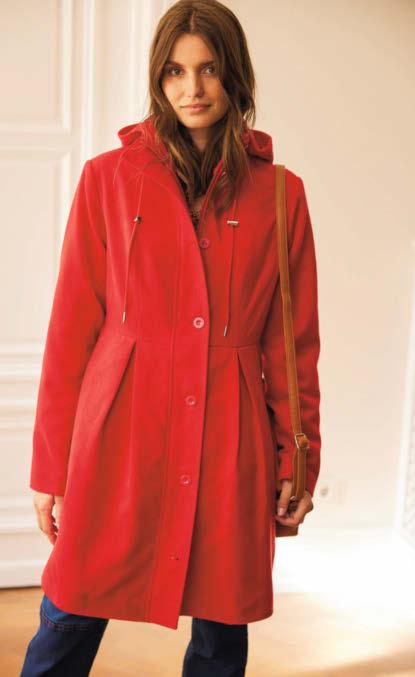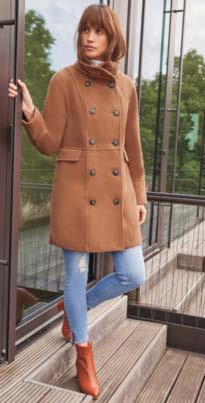 01 | Kabát z vlnenej imitácie, opasok na zaviazanie, 59,99 € 60% polyester, 30% recyklovaný polyester, 10% viskóza. Veľ. 36-54 hrdzavo hnedá 972 352 KH