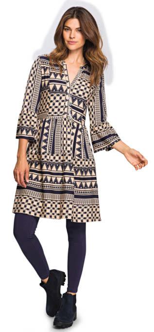 02 | Džersejové šaty vzoro vané, 24,99 95% viskóza, 5% elastan. Veľ. 32/34-48/50 ťavia/tmavomodrá