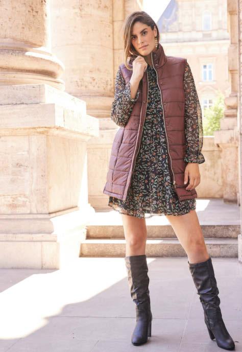 02 | Šifónová blúzka, 17,99 € 100% recyklovaný polyester. Veľ. 34-50 čierna kvetovaná 973 095 KH 04 | Dlhá blúzka z udržateľnej viskózy, 17,99 € 100% viskóza (udržateľná). Veľ. 34-50 čierna 953 390 KH biela 953 393 KH 03 | Pletená vesta, 12,99 € 75% polyakryl, 22% polyester, 3% elastan. Veľ. 32/34-48/50 vintage ružová melírovaná 961 420 KH svetlosivá melírovaná 944 327 KH šalviovo zelená melírovaná 944 329 KH 03 | Pletená vesta 1299 01 | Šifónové šaty, 29,99 € vrchný materiál: 100% recyklovaný polyester, podšívka: 100% polyester. Veľ. 34-50 čierna kvetovaná 961 701 KH 05 | Legíny z robustnej džersej, 24,99 € 02 | Šifónová blúzka, 17,99 € 01 | Šifónové šaty, 29,99 € 04 | Dlhá blúzka z udržateľnej viskózy 1799 Čižmy 971023 nájdete online 146M09_BF00210 |