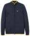 03 | Blejzer s kontrastnými pásmi, 39,99 € vrchný materiál: 80% polyester, 20% viskóza, podšívka: polyester, patenty: 100% polyester Veľ. 34-46 tmavomodrá/biela