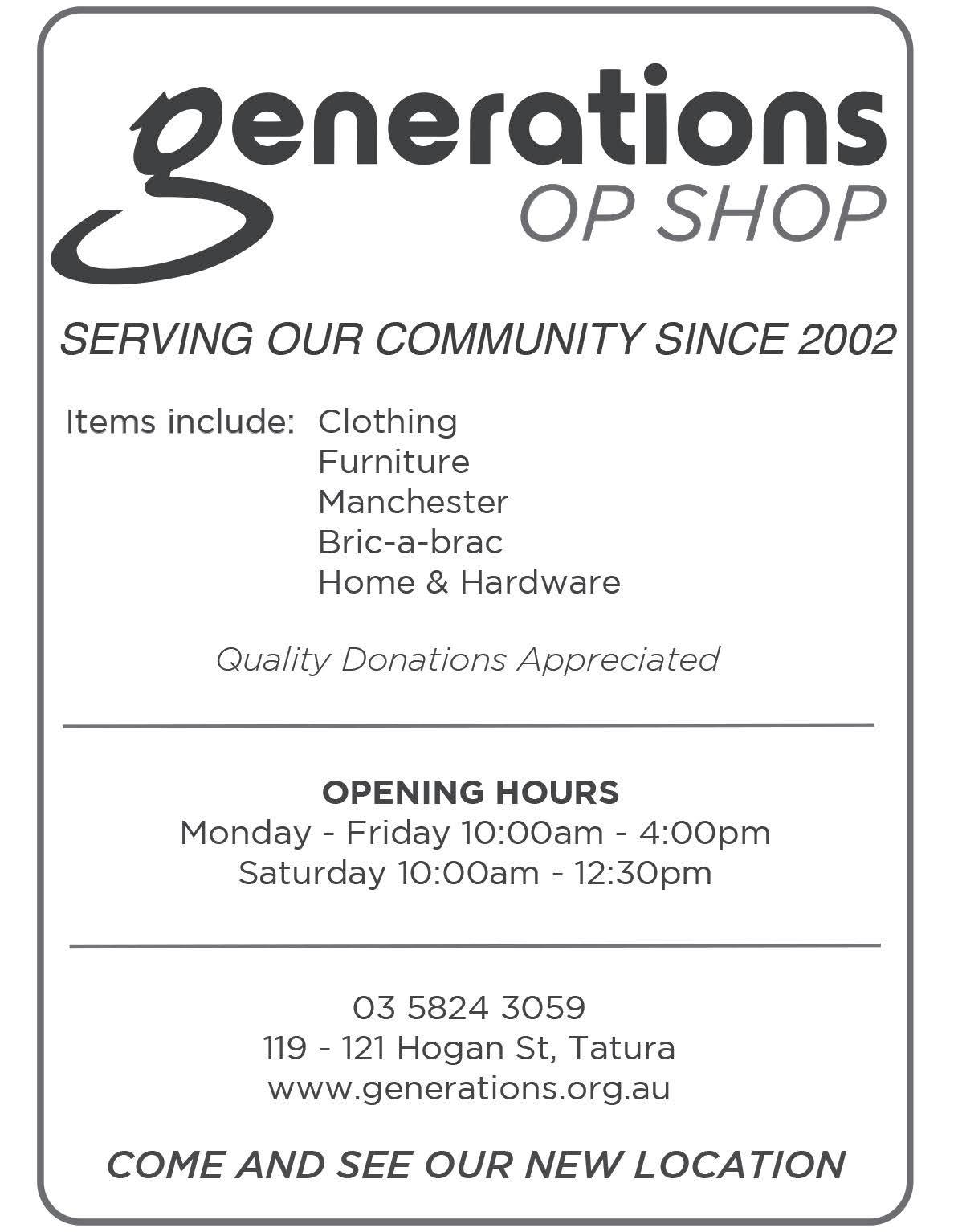 For appointments, please contact Tatura Community House on 5824 1315.
