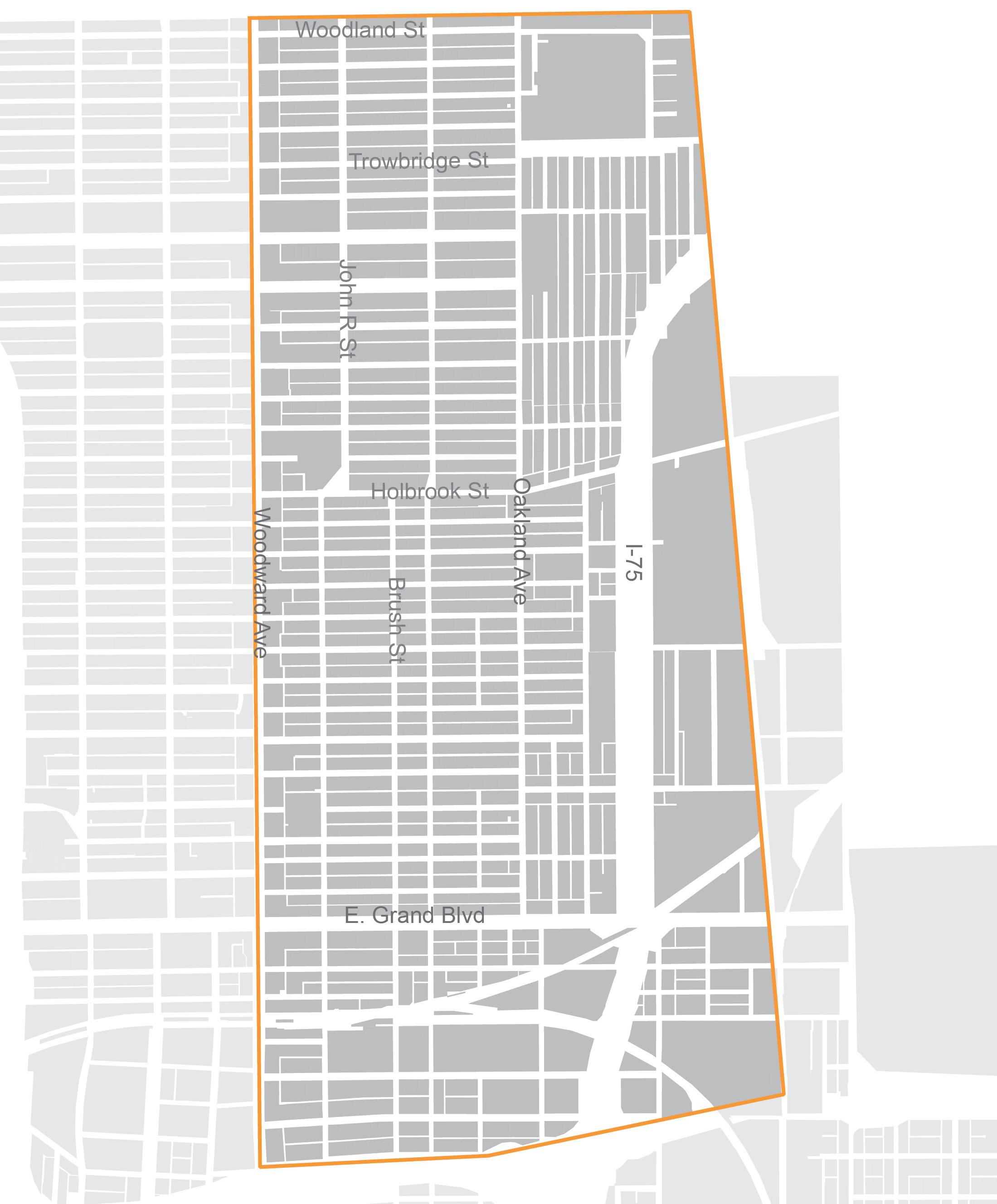 University of Michigan Library, “Early Detroit Images from the Burton Historical Collection of the Detroit Public Library: View along Woodward between Milwaukee & East Grand”; Brooks, H.W., c.195. http://quod. lib.umich.edu/d/dpa1ic/x-dpa4529/dpa4529.tif; Google Maps, “Detroit, Michigan.” 2009. http://maps.google. com.