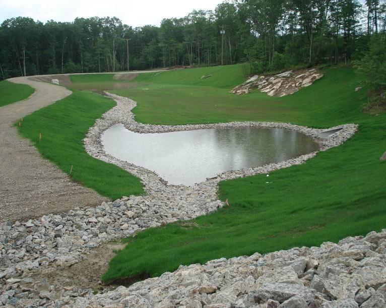 Retention basins are permanent pools of standing water that hold stormwater for extended periods of time after storm events. This reduces the amount of runoff entering the drainage system during the storm events and also allows pollutants to settle out, thus addressing stormwater quantity and water quality. Stormwater is held in a retention pond until it is displaced by runoff from the next storm event. Additional benefits to constructing retention ponds include enhanced aesthetic appeal of a property, increased biodiversity and wildlife habitat available on-site, and minimized erosion.