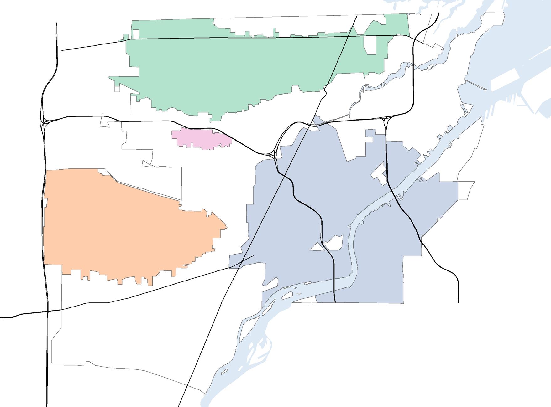 2. Identified priority zones. Priority zones are areas that are particularly susceptible to flooding events of combined sewer overflows (CSOs); these areas are considered priorities because they will benefit the most from implementation of stormwater management practices. We identified four priority zones in Toledo.