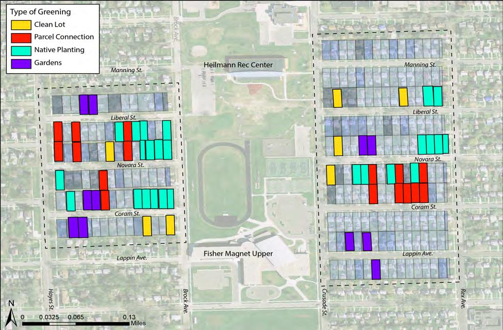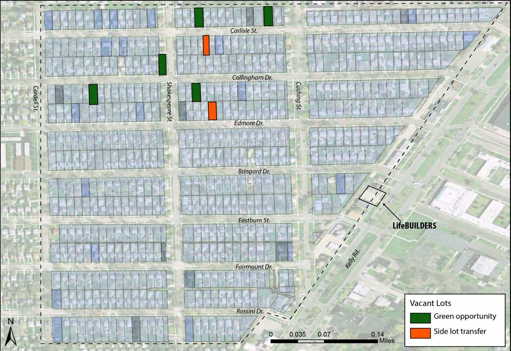 FIGURE 7.14 Initial opportunities for greening lots and transferring side lots in Preserve