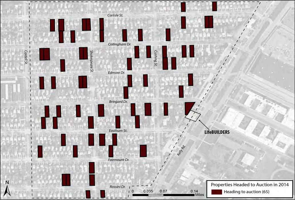 For more information on REO properties (as of 2012), fire damaged properties, homeowners, rental properties, at risk properties, Michigan Land Bank Owned Properties, and Unknown public properties that did not sell at 2013 tax auction, please see excel spreadsheet provided to LifeBUILDERS.
