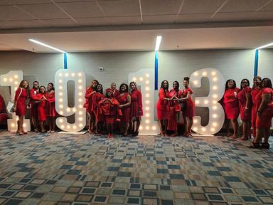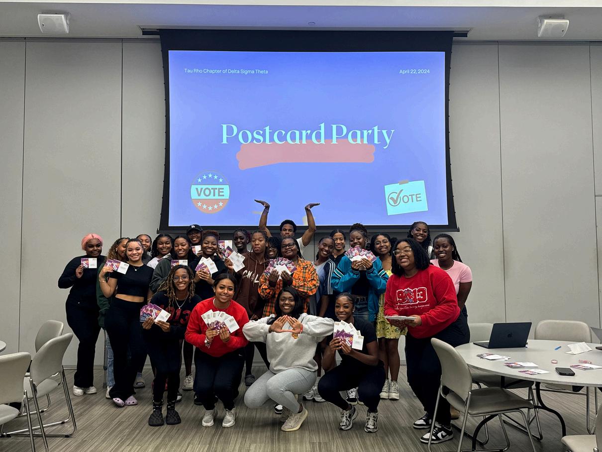 On April 30, 2024, Tau Rho turned 20! In honor of the twenty great years of TP, the Charter Week committee planned an extravagant and highly anticipated week of events. As we welcomed many past initiates of Tau Rho back to our beloved alma mater, TP had the opportunity to connect with sorors, fellowship, and gain valuable pieces of advice During this week, we served our community through a postcard campaign for black and brown voter engagement, registered voters, educated community members on absentee ballots, and supported community gardens at the Green Haven Project We also had a friendly game of flag football with the Iota Nu Chapter of Alpha Kappa Alpha Sorority, Inc in honor of both of our charter days. The week was full of sisterly events including a brunch, celebrations, campus tours, and the annual cake-cutting and toast!
