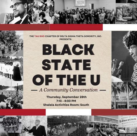 As the first program of the academic year, Tau Rho wanted to start with a bang! Black State of the U, a traditional program hosted by our chapter, was a revolutionary space for black student leaders and faculty at the University of Miami to learn the needs of our neighbors. Gathered in Activities Room South, representatives from organizations including Planet Kreyol, United Black Students, Black Leaders for the Queer Community, Hairology, and National Society of Black Engineers, interacted with our allstar panel Our panel included the current student government president, Dean of Students, President of Black Alumni Society and TP Charter member, Astin Hayes, and many more vital leaders in our community.