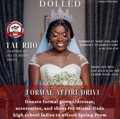 In the month of April, Tau Rho collected dozens of formal gowns and formal attire to donate to lowerincome students for prom. With donations from MAC, DCAC, University of Miami’s Alpha Delta Pi chapter, and many other individuals, we were able to help many young students’ dreams come true.