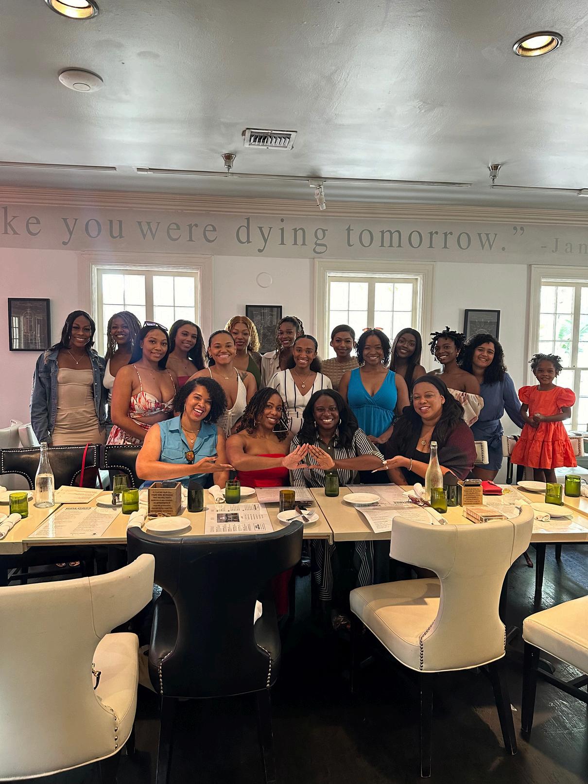 We want to extend the biggest thank you to both the Miami Alumnae Chapter and Dade County Alumnae Chapters for the countless hours of support to Tau Rho. From reactivating the chapter to supporting us at our events to being our advisors, we cannot express how much we appreciate having members of both of these chapters guide us The relationship between collegiate and alumnae chapters is one of support and love. Members of MAC and DCAC have shown us unconditional kindness. When we ask for 10 items, you all give us 100 When we need one person to show up, you all come by the dozens When we need a connection or recommendation, you all give us an opportunity. Over the past few years, the relationship between our chapters has grown immensely, as you all have shown us what sisterhood truly means We are forever thankful for each member of both chapters and cannot wait for the years to come.