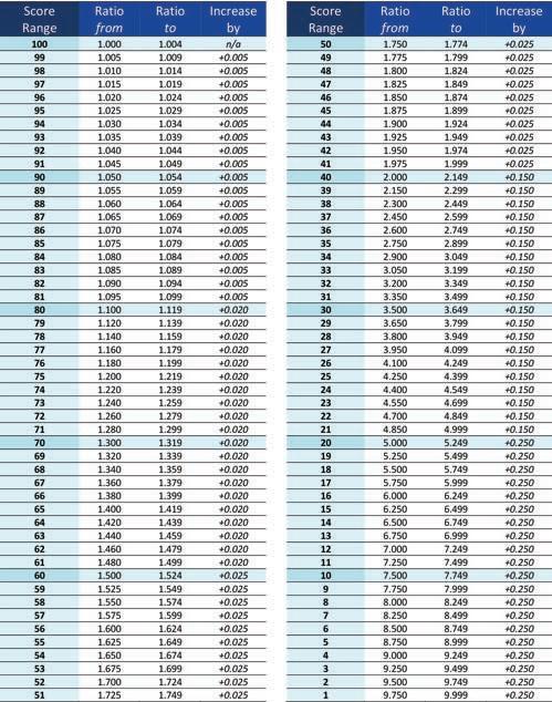 SCORE TO RATIO CONVERSION TABLE