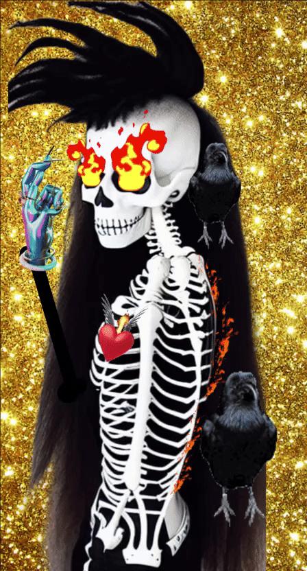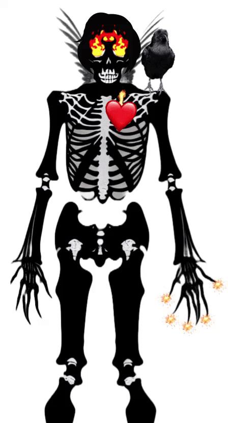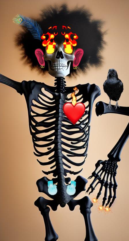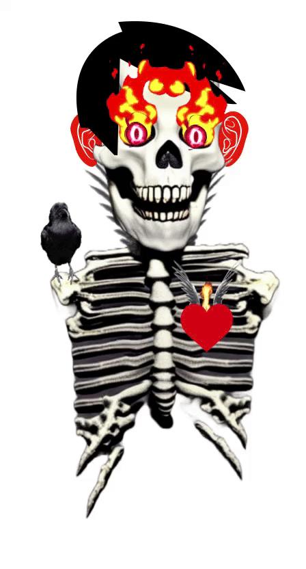 Using 1st Generation AI image tools, Blackmonster has created a unique collection of skeletal works that combine grotesquery and royalty. The AI image generation includes the Black Skeleton but also the sacred heart and wings motif from the Blackmonster archive.