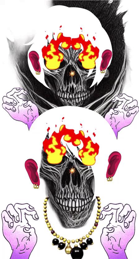 Each Skull image is first generated with AI tools, exported for image processing then rendered as an MP4 video and PNG image. The MP4 videos are later converted into GIF images.