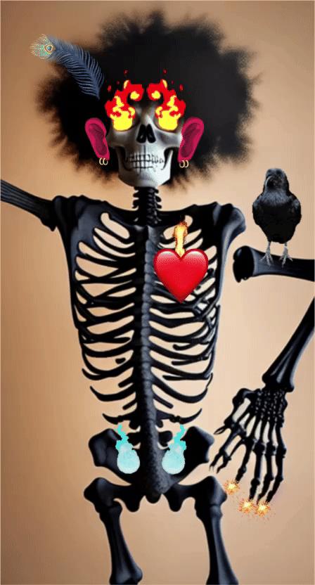 The Blackmonster Family Reliquary, property and creation of the artist Tavarus Blackmonster, is a collection of hand-illustrated and hand-animated, AI-Generated Bone images.