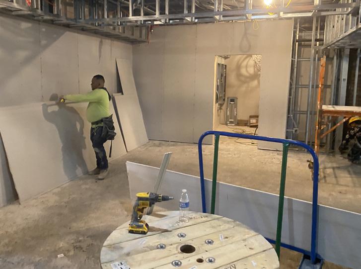 carpet, tile, and decorative lighting have been approved and ordered with delivery dates confirmed in time for the project’s scheduled completion. Final trim and millwork drawings are being finalized and shared with the fabrication contractor. Floor plan design modifications, necessitated by the existing building structure that were hidden behind the former walls and ceilings before demolition began, have for the most part been minimal. Those modifications in most instances have resulted in an improvement to the original plan and will provide for an even more open feeling to the space.