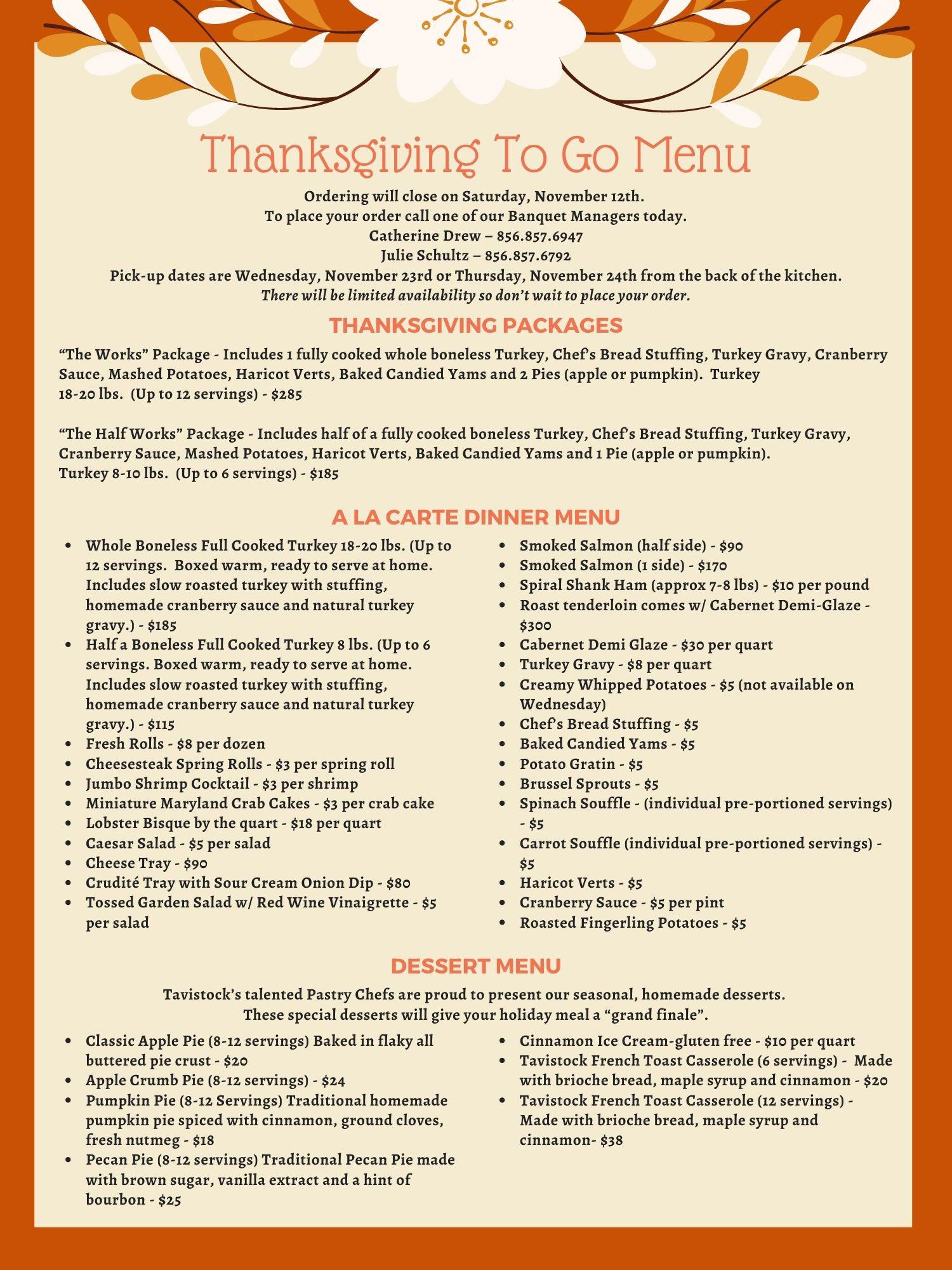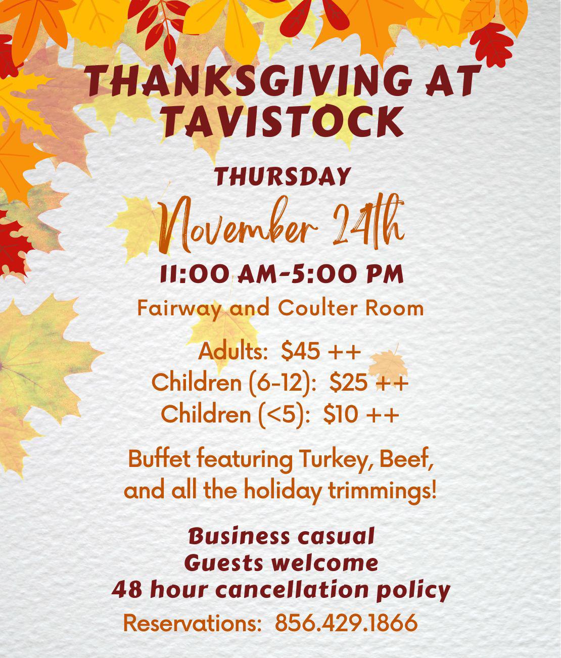 THANKSGIVING AT TAVISTOCK Thursday, November 24th