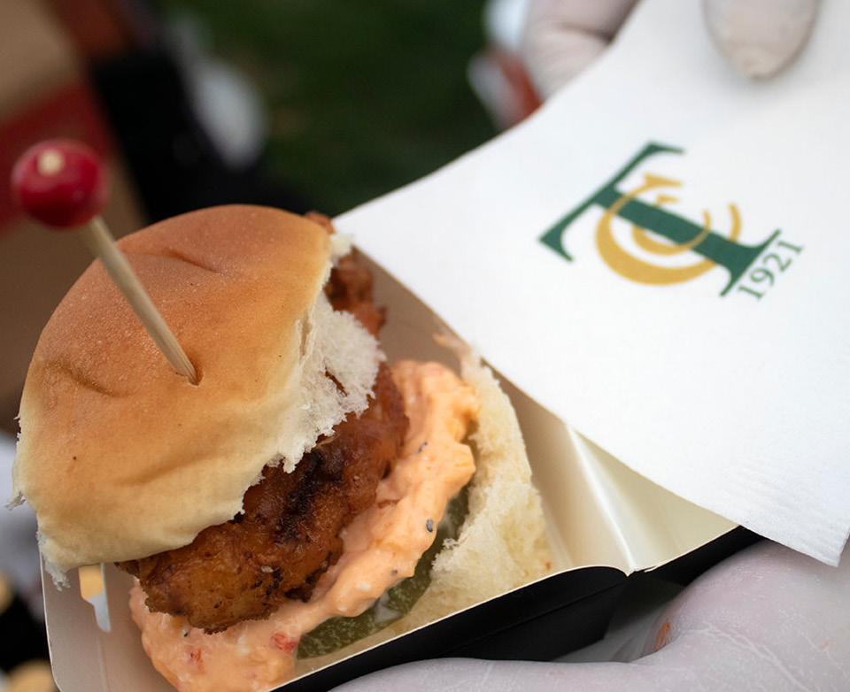 Our own Executive Chef Kelly Morrow and Chef Carlos Torres represented TCC at the first annual Golf Kitchen Invitational at GlenArbor Golf Club, Bedford Hills, New York on September 8th, 2022. The first annual Golf Kitchen Invitational showcased some of the tri-states finest local private golf and Country Club Chefs and their cuisine. These local area Club Chefs were all stationed out on the course and served up a mini feast that was enjoyed by participants and members. Chef Kelly and Chef Carlos served Tennessee Hot Chicken Sliders with Pimento Cheese, Habanero Hot Sauce, and Spicy Pickles and then packed a burning hot taste with their Cherry Moonshine Lemonade! These sliders and lemonade were sure to leave a great impression. Congratulations on a job well done and making Tavistock proud!