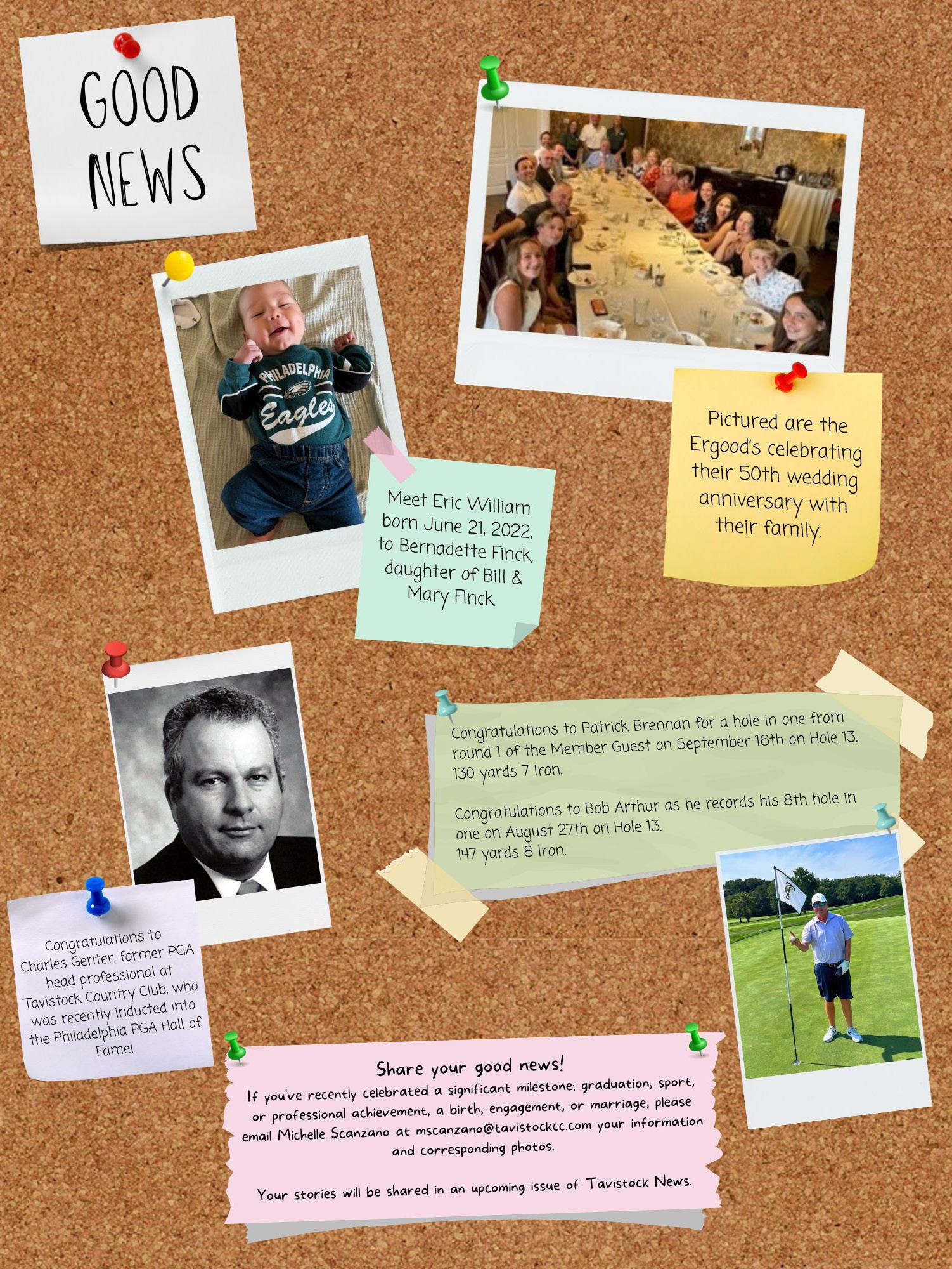 Email your major personal, professional and life milestones to Michelle Scanzano with the subject “Good News”. Email mscanzano@tavistockcc.com