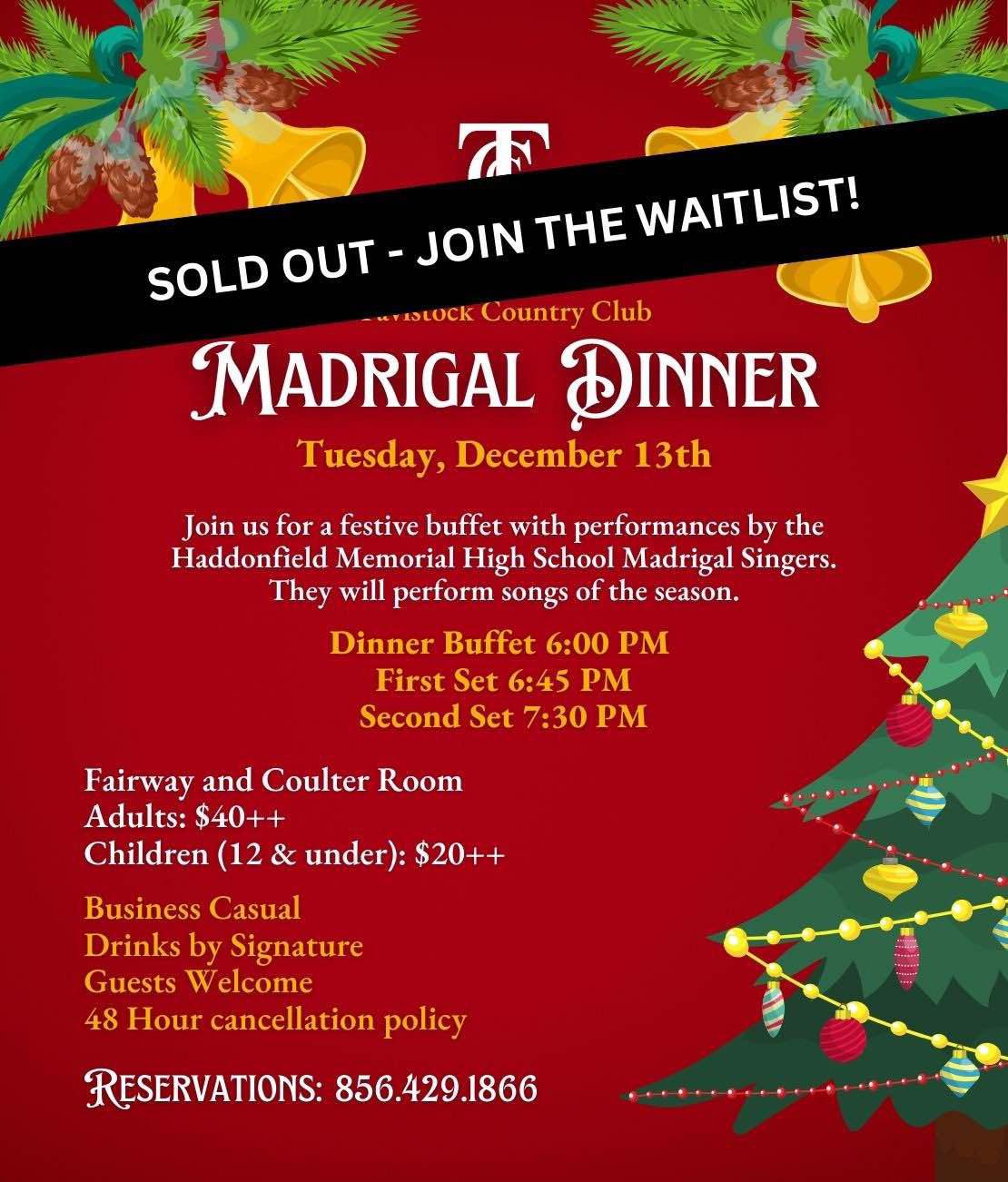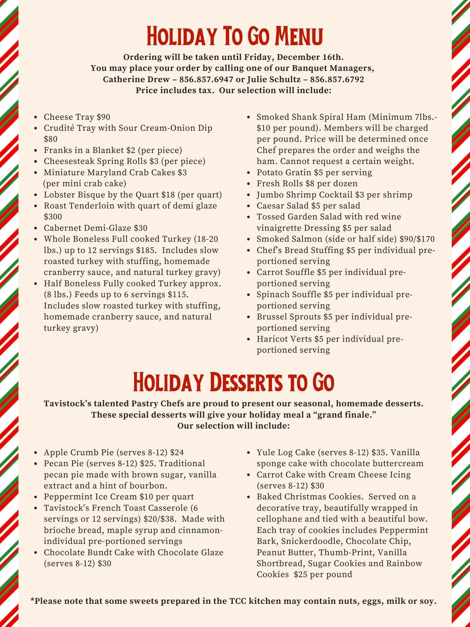 TAVISTOCK COUNTRY CLUB IS DEDICATED TO CREATING A FIRST - 22 December 2022 Sunday Monday Tuesday Wednesday Thursday Friday Saturday 1 BUCK-A-SHUCK 2 FRIDAY NIGHT LIVE MUSIC 3 BRUNCH WITH SANTA PRIME RIB NIGHT 4 BRUNCH WITH SANTA GRAVY SUNDAY 5 COURSE CLOSED 6 7 WOMEN’S GOLFER HOLIDAY PARTY FAMILY NIGHT LADIES NIGHT 8 A LONGWOOD CHRISTMAS BUS TRIP COMPLIMENTARY WINE TASTING BUCK-A-SHUCK 9 GOLF SHOP SALE FRIDAY NIGHT LIVE MUSIC 10 BRUNCH WITH SANTA PRIME RIB NIGHT 11 BRUNCH WITH SANTA GRAVY SUNDAY 12 COURSE CLOSED 13 MADRIGALS DINNER 14 FAMILY NIGHT LADIES NIGHT 15 BUCK-A-SHUCK 16 FRIDAY NIGHT LIVE MUSIC 17 PRIME RIB NIGHT 18 SUNDAY BRUNCH GRAVY SUNDAY 19 COURSE CLOSED 20 CHRISTMAS HOLIDAY BUFFET 21 CHRISTMAS HOLIDAY BUFFET LADIES NIGHT 22 CHRISTMAS HOLIDAY BUFFET 23 CHRISTMAS HOLIDAY BUFFET FRIDAY NIGHT LIVE MUSIC 24 CHRISTMAS EVE CLUB OPEN UNTIL 2:00 PM FOR HOLIDAY ORDER PICK UPS 26 COURSE CLOSED 27 28 FAMILY NIGHT LADIES NIGHT 29 BUCK-A-SHUCK 30 FRIDAY NIGHT LIVE MUSIC DINING & ENTERTAINMENT RESERVATIONS: 856.429.1866 GOLF RESERVATIONS: 856.429.1827 25 31 CLUB CLOSED