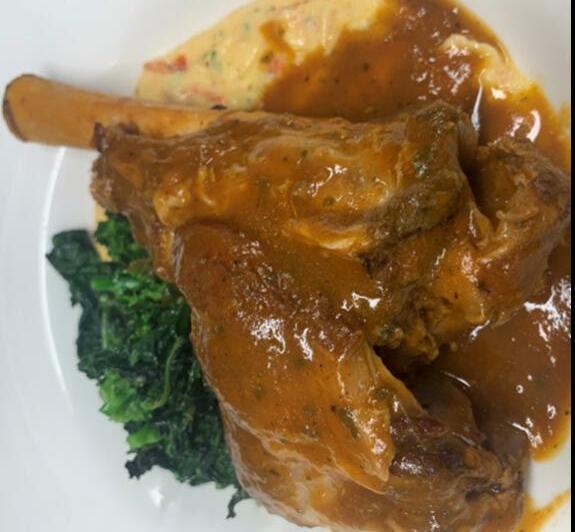 Sauteed broccoli rabe, tomato & feta cheese polenta with braising jus.