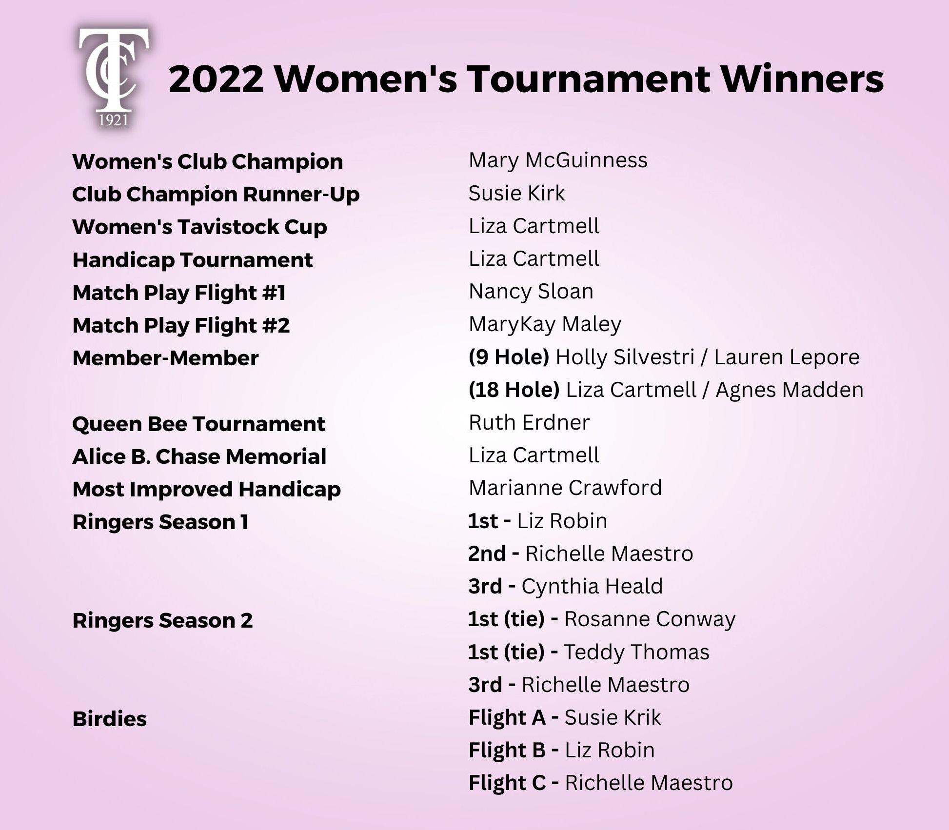 Multiple Tournament Winner: Liza Cartmell Match Play Tournament Flight 2 Winner: MaryKay Maley