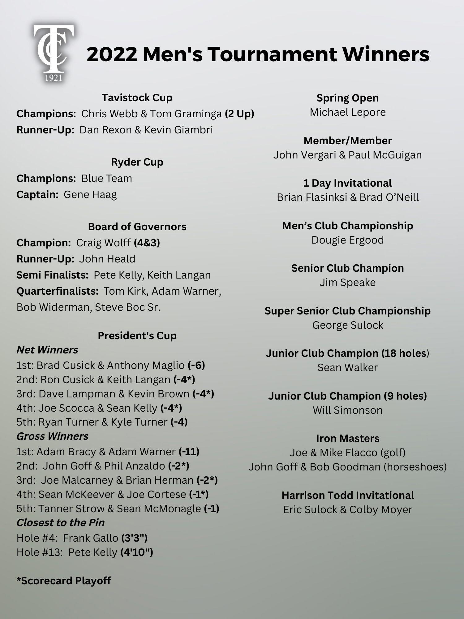 Congratulations also to the winners of our trophy tournaments and season-long competitions!