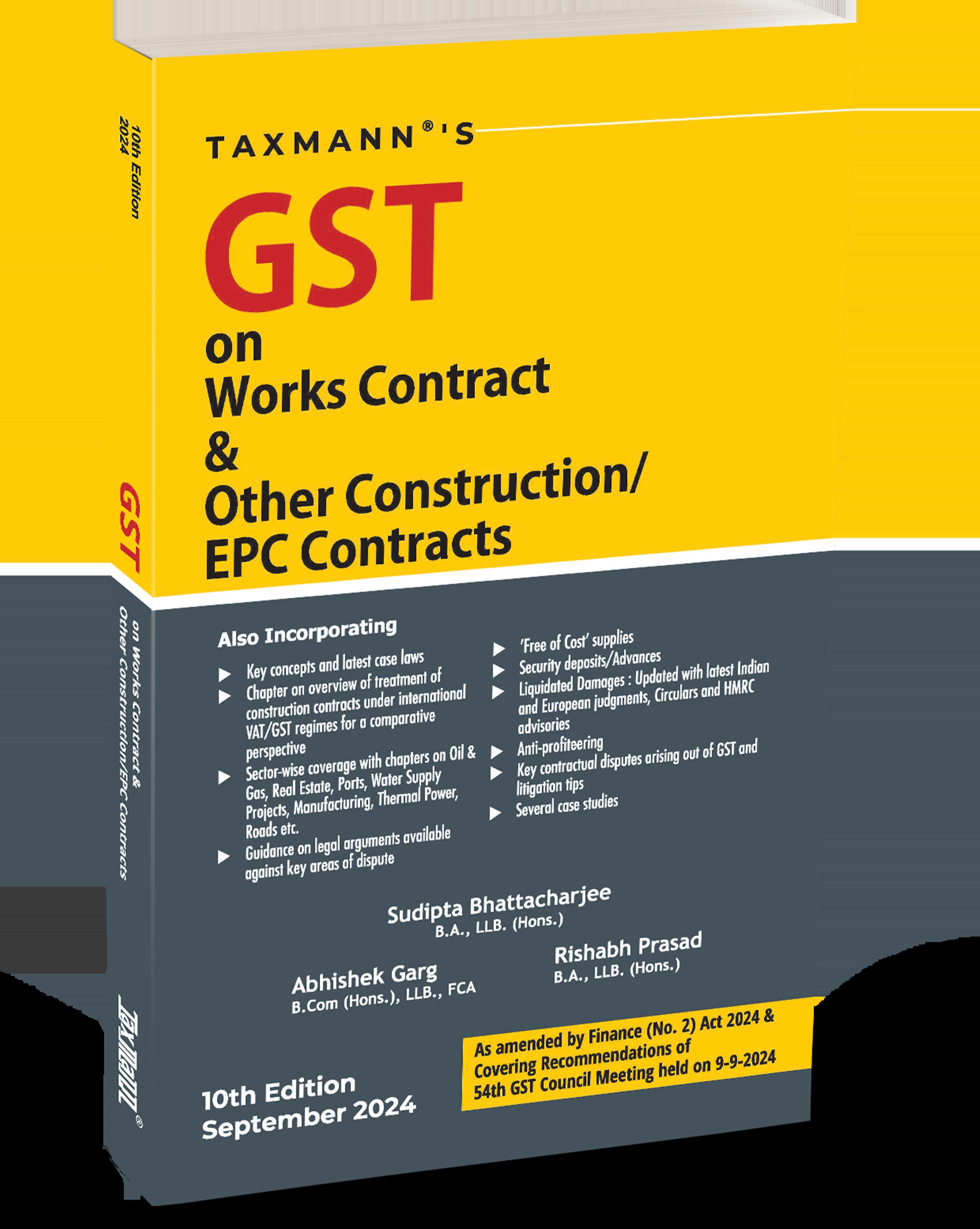 This book is a comprehensive guide that discusses and analyses the complexities of GST as it applies to works contracts, construction projects, and EPC contracts across various industries. It covers critical topics such as the definition of works contracts under GST, input tax credit eligibility, valuation, sector-specific guidance (e.g., oil & gas, real estate, power generation), and best practices for tax controversy management. Its practical approach includes case studies, international comparisons, and up-to-date legal precedents.