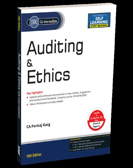 Auditing & Ethics | Self-Learning Study Material is a concise yet comprehensive text for CA Intermediate – Group II | Paper 5, designed to help students grasp auditing concepts with clarity and exam precision. Updated till 30th September 2025, this Edition covers all statutory, ethical, and professional amendments, including the Code of Ethics (2020 & 2024 editions), revised Engagement & Quality Control Standards (SQC 1 and SA 220), CARO 2020, and provisions of the Companies Act 2013. Presented in a learner-friendly and structured format, it simplifies complex audit and ethics topics through charts, tables, and logical sequencing—making it ideal for both conceptual understanding and last-minute revision.