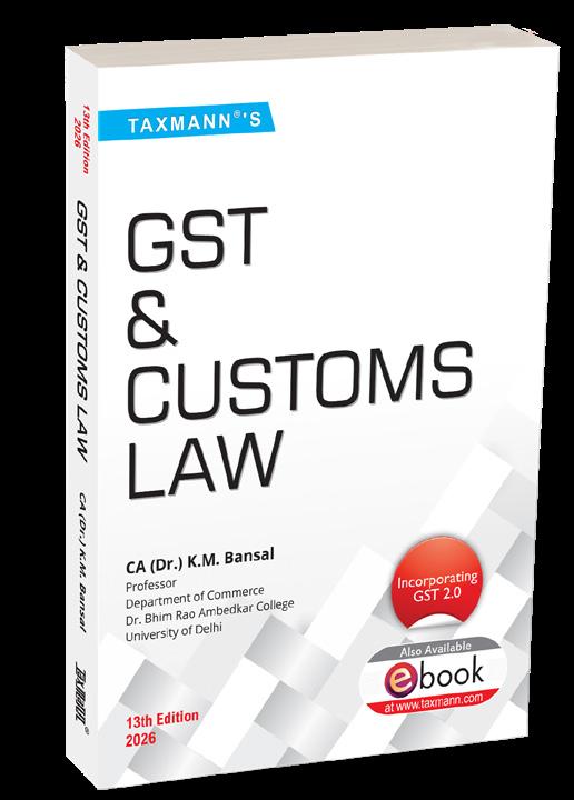 GST & Customs Law (Incorporating GST 2.0) is a comprehensive, statute-driven, and student-oriented exposition of India’s indirect tax framework, presenting Goods and Services Tax (GST) and Customs Law as an integrated fiscal, compliance, and governance system. The book explains GST as a dynamic legal architecture grounded in constitutional principles, administered through technology-enabled compliance mechanisms, and continuously shaped by GST Council decisions, notifications, circulars, and administrative developments. This Edition fully incorporates the GST 2.0 reform framework approved in September 2025, reflecting the transition of GST from its implementation phase to a phase of structural correction, rate rationalisation, simplification, predictability, and trust-based compliance. The book adopts a structured pedagogical approach, progressing from legal principles to statutory provisions, rule mechanics, numerical illustrations, compliance application, and self-assessment through exam-oriented questions.