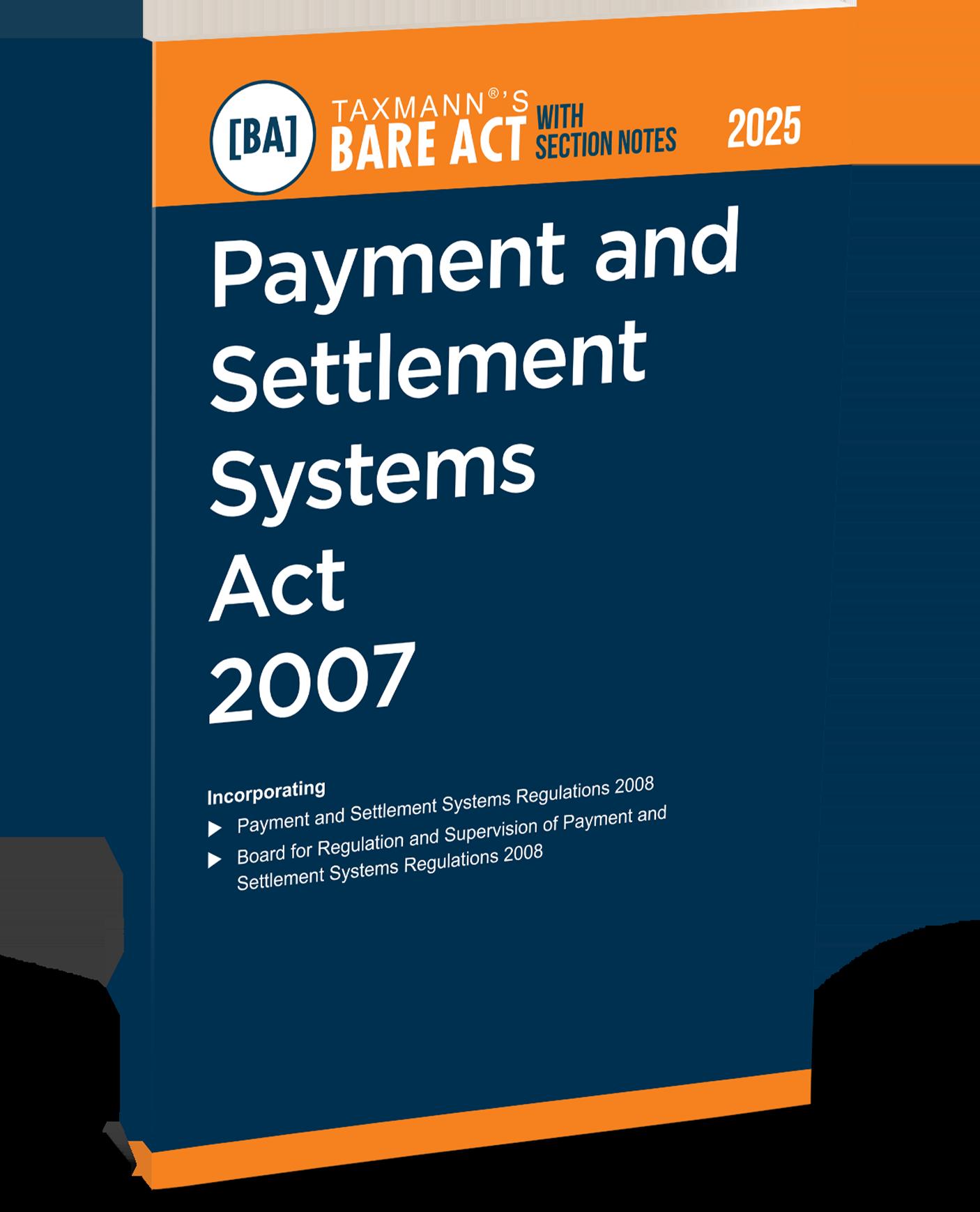 Payment and Settlement Systems Act 2007 [Bare Act with Section Notes] by Taxmann is a definitive legal reference for India's payment and settlement laws, combining the complete, updated statutory text with expert section-wise notes, practical commentary, and select case law. This 2025 Edition provides essential reference for compliance, interpretation, and application of payment systems regulated by the Reserve Bank of India, making it indispensable as India's digital economy evolves. This book is intended for the following audience:
